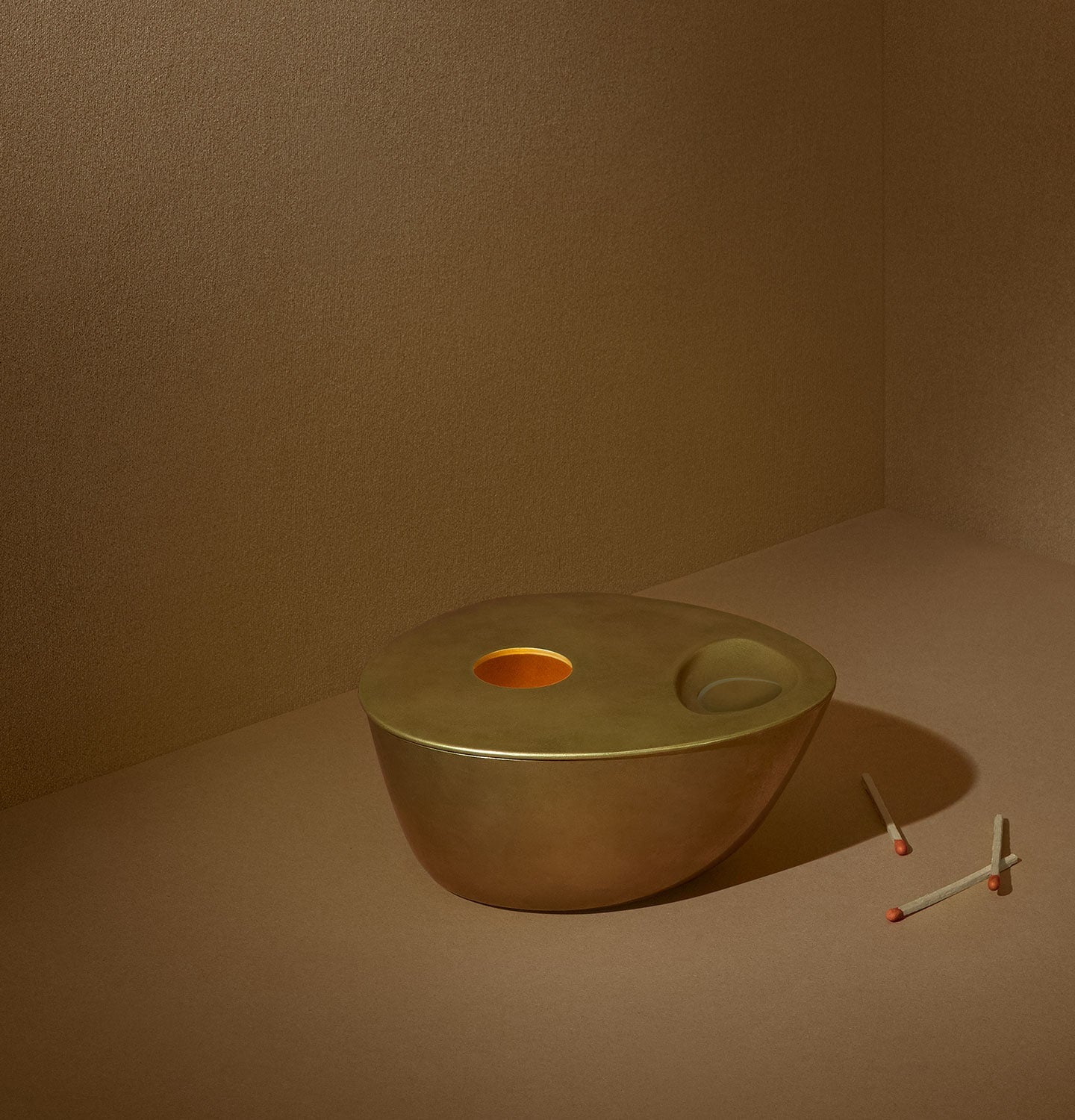 An object of substance and beauty—a unique, refined alternative to traditional burners. Designed for Aesop by Studio Henry Wilson and crafted from solid brass.